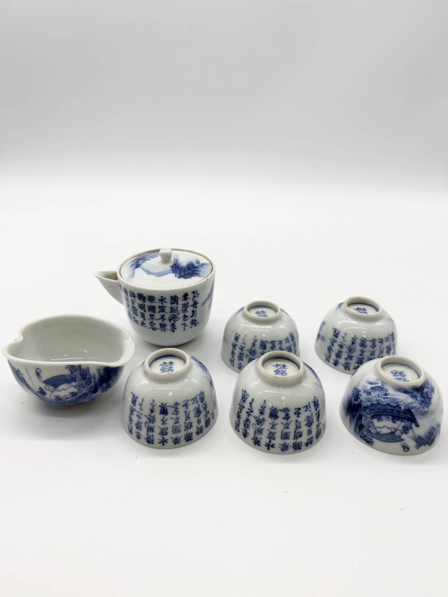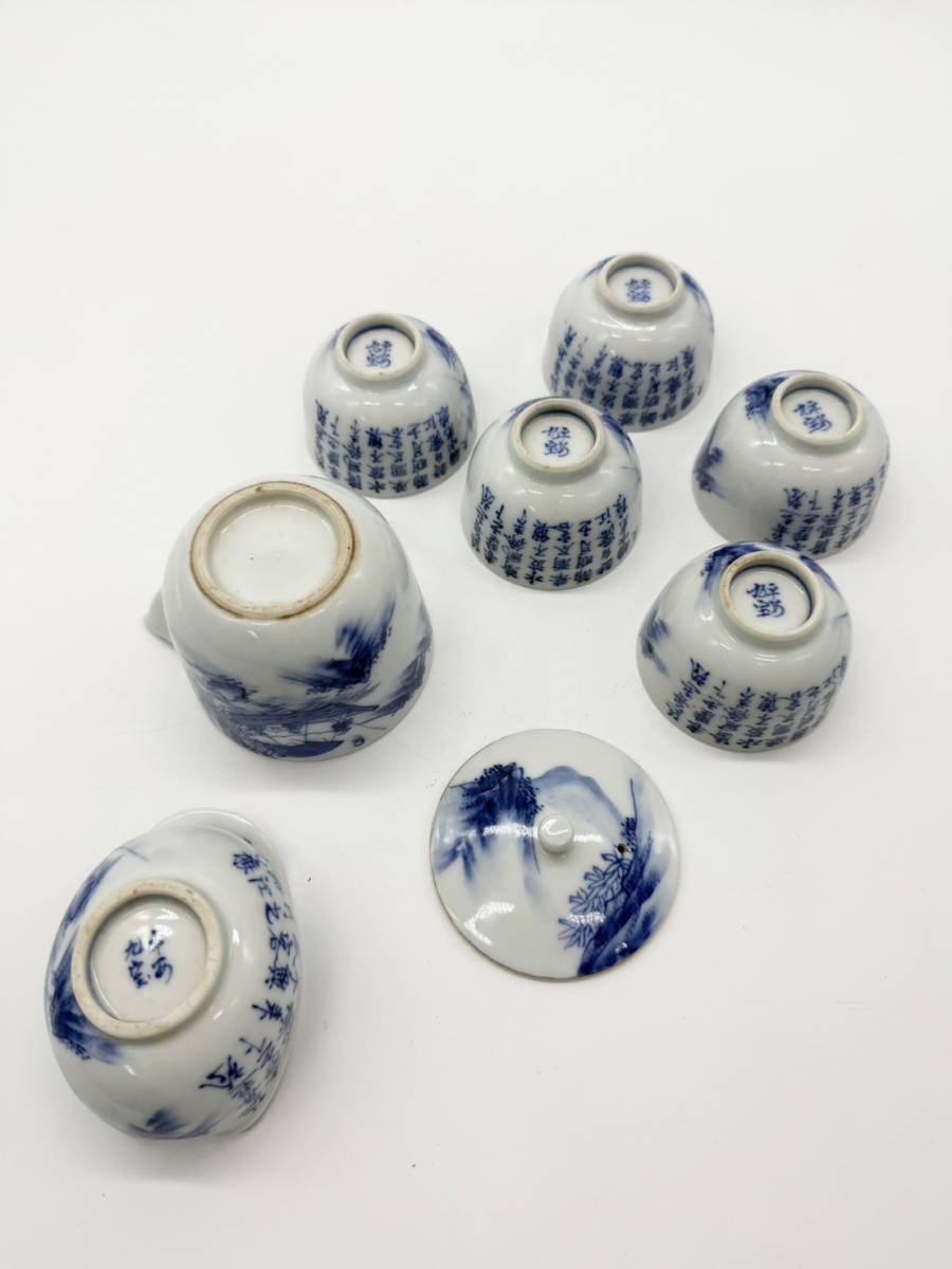 ●. чайная посуда flat дешево 9 . белый фарфор с синим рисунком ландшафт пейзаж map . чайная посуда . заварной чайник горячая вода холодный .. горячая вода . керамика