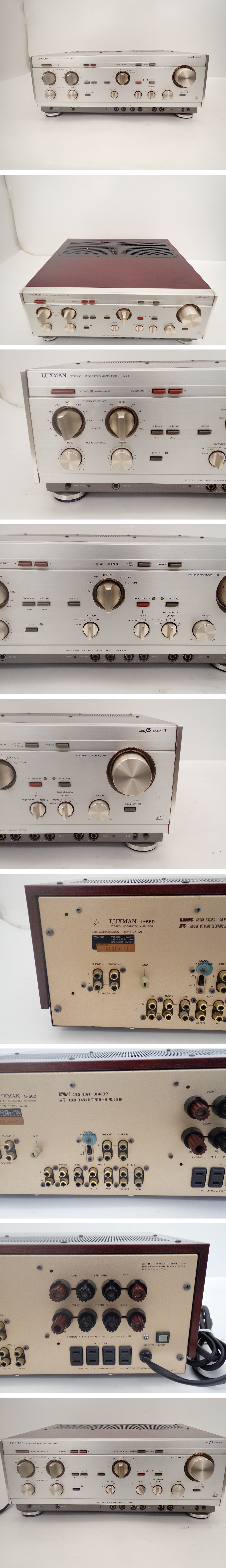 | [ specification ] | | | производитель :LUXMAN номер образца :L-560 страна происхождения :JAPAN модель : Inte серый tedo* усилитель реальный эффект мощность :50W+50W(A класс работа ,8Ω, обе ch работа ) полная высота гармоника деформация показатель :0.005% и меньше (8Ω, обе ch работа ,-3dB) потребляемая энергия :310W наружные размеры : ширина 453× высота 174× глубина 460mm масса :21.4kg