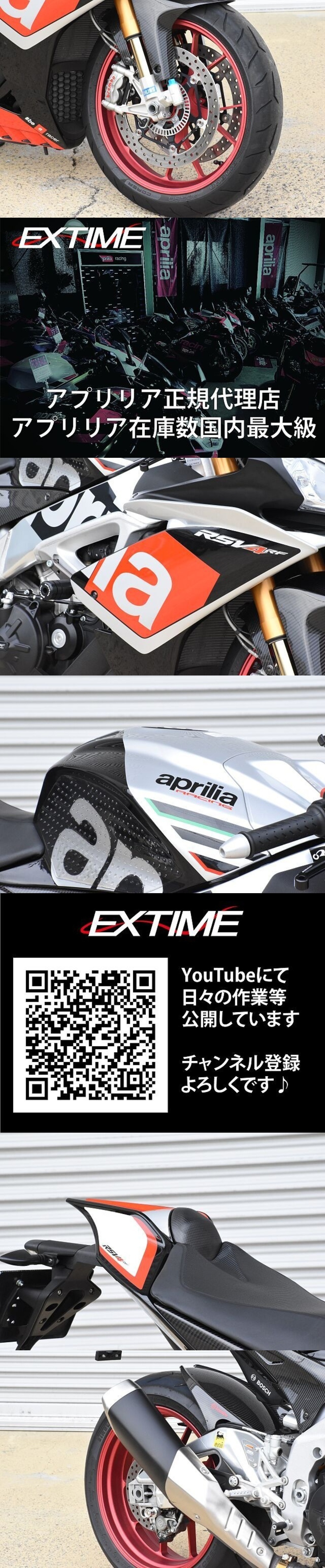 | производитель | Aprilia | первая регистрация год | - | | название машины | Aprilia RSV4 RF | техосмотр "shaken" | - | | модель | | объем двигателя | 1000cc | | номер кузова | ZD4RKL024GS000*** | пробег | 12,516Km |