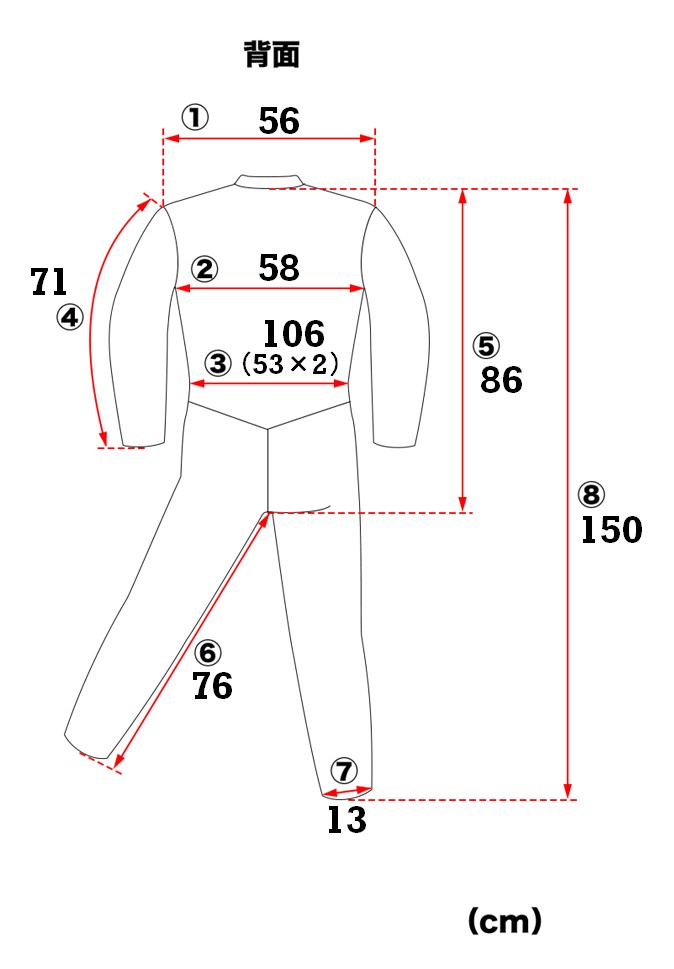 ⑧ общая длина : примерно 150cm ( от шеи брюки. .. до. длина . воротник . шов. нет продукт воротник самый верхняя часть из 2cm внизу. положение из брюки .. до )