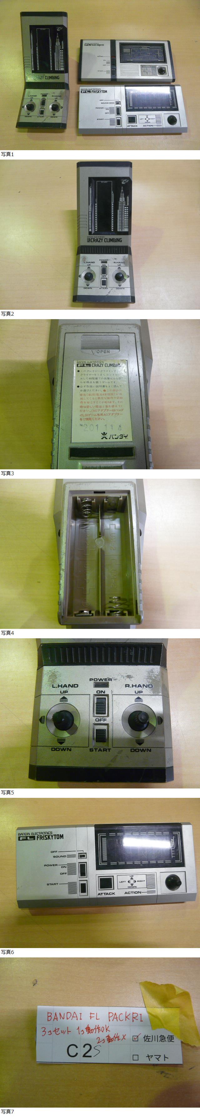 | [ торговое название ] Bandai electronics FL игра 3 позиций комплект FL Park li Monstar (PACKRI MONSTER) FLfli лыжи Tom (FRISKY TOM) FLk Lazy climbing (CRAZY CLIMBING) [ состояние товара ] внешний вид : из-за возраста царапина , загрязнения , выцветание и т.п. есть . подробности. изображение подтвердите пожалуйста . работа :k Lazy climbing только электризация рабочее состояние подтверждено . прочее подтверждение рабочего состояния .... поэтому , утиль обращение как выставляем . отсутствует : корпус только выставляется . коробка , инструкция , батарейка. не прилагается . [ примечания ] примерно 40 год и больше передний. электронная игрушка . есть ... тот, кто понимает только делайте ставки . техническое обслуживание . ремонт , снятие деталей . предпосылка считая .. рассмотрение . пожалуйста . претензии не принимаются * возврату не подлежит .