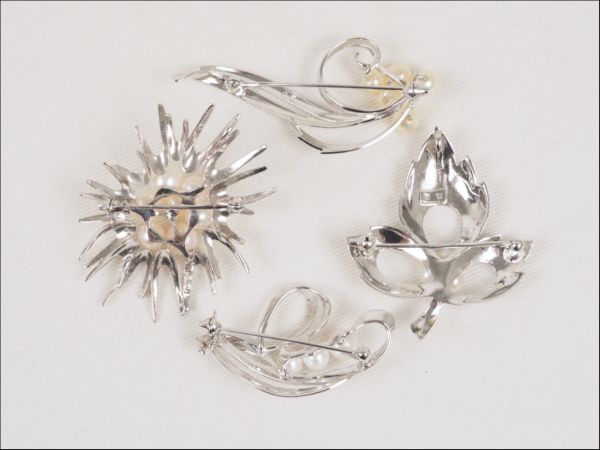 роскошный MIKIMOTO Mikimoto жемчуг брошь 4 позиций комплект совместно SILVER