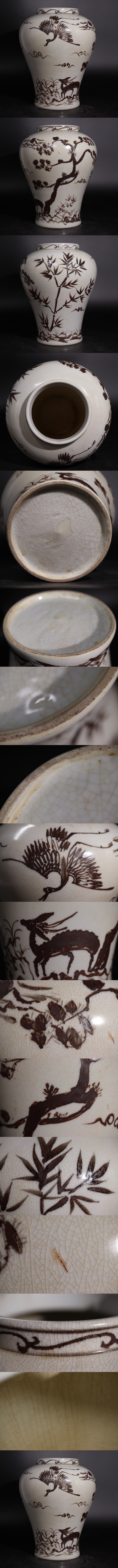 | времена Joseon Dynasty металлический . журавль * олень документ ./ утро . старый изобразительное искусство слива бутылка ваза ваза для цветов орнамент .. обратная сторона . зеленый чай орнамент .G2996 |