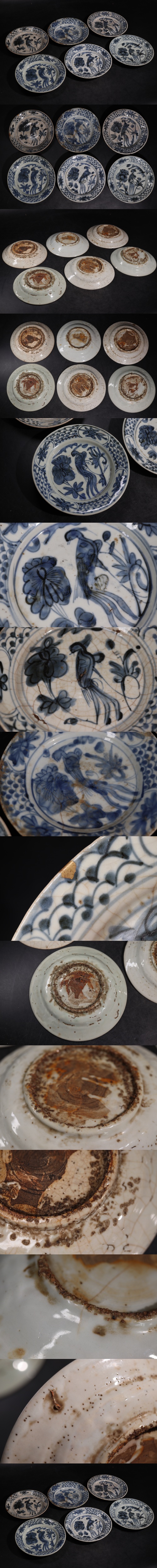 | времена старый белый фарфор с синим рисунком цветы и птицы документ тарелка шесть покупатель золотой ../ Akira China изобразительное искусство чайная посуда . чайная посуда зеленый чай орнамент .G3859 |