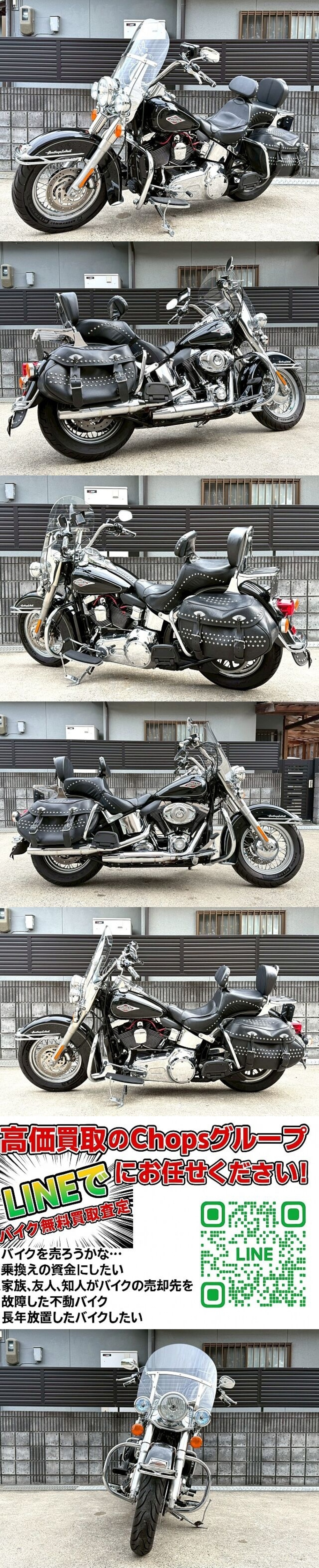 | производитель | Harley | первая регистрация год | эпоха Heisei 19 год | | название машины | Harley FLSTC | техосмотр "shaken" | - | | модель | | объем двигателя | 1450cc | | номер кузова | 5HD1BW5E4DB010*** | пробег | 22,251Km |
