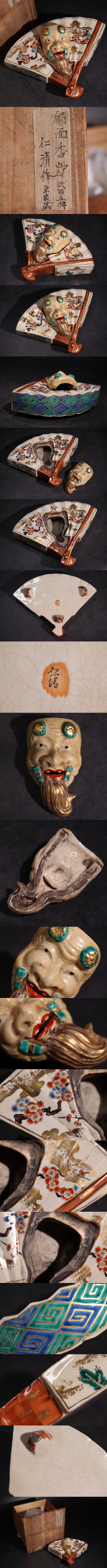 | [. Kiyoshi произведение цветная роспись золотая краска веер . крышка курильница ] дерево с ящиком / Kyoyaki Shimizu .. инструмент зеленый чай орнамент .G3877 |