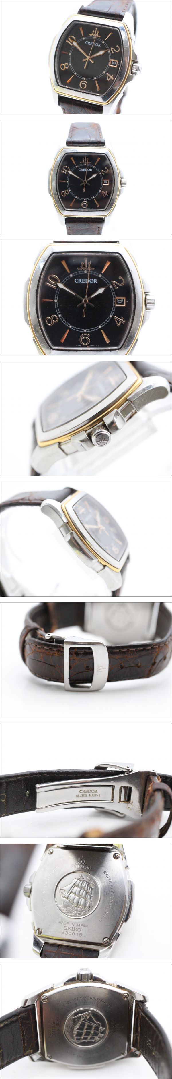 SEIKO CREDOR Seiko Credor 8J82-0AE0 18KT+SS черный циферблат k .-tsu Date мужской размер :< кейс размер > примерно 3.2.( заводная головка часов не включая ) < рука вокруг размер > примерно 15-18. ※ непрофессионал измерение . есть , некоторые погрешности. простите пожалуйста .